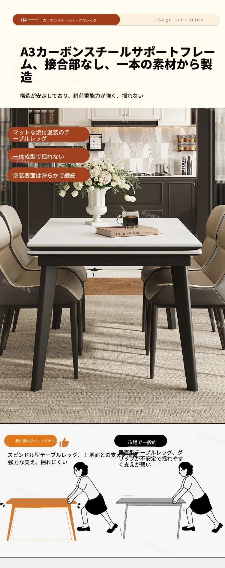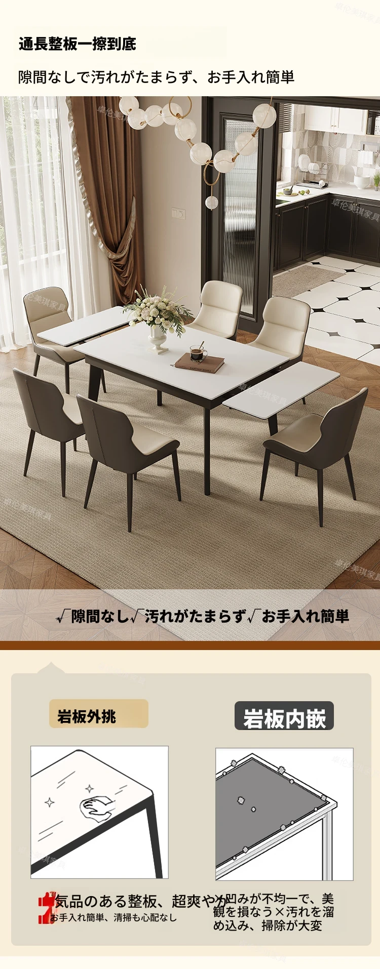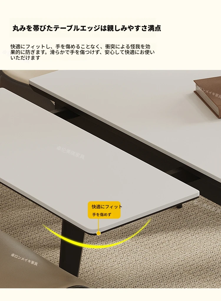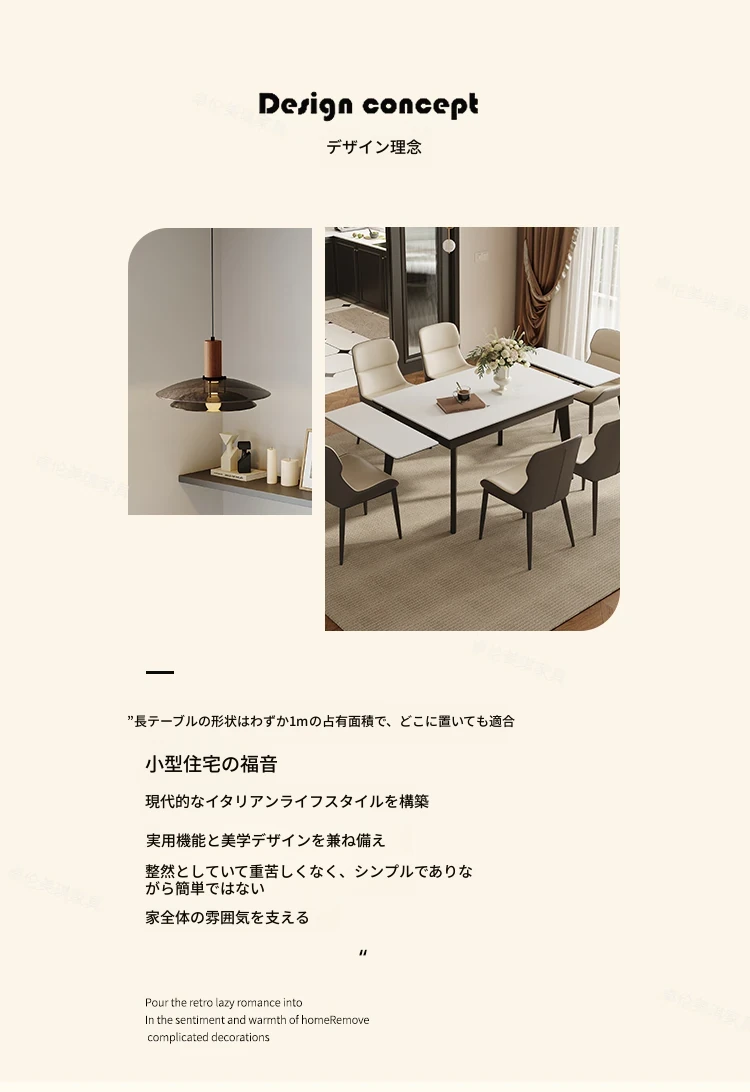 卓伦美琪の伸縮式ロック板ダイニングテーブル&チェアセット - モダンでシンプル、狭いスペースにも最適な折りたたみ長方形テーブル!おしゃれな家用家具で、快適な食事のひとときを。