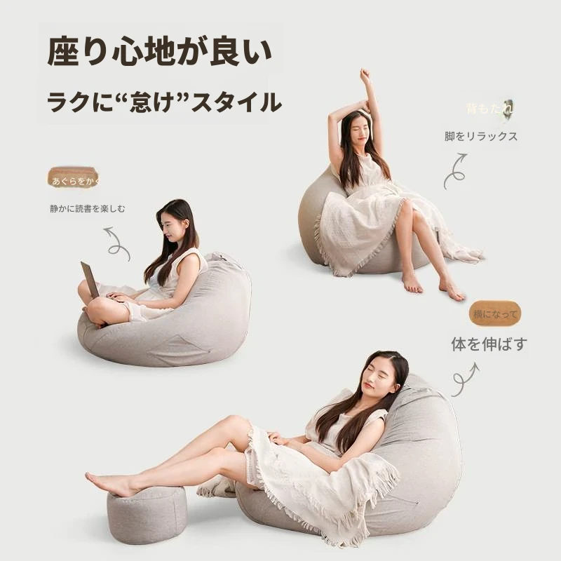 リラックス豆袋ソファ - 寝転びもできるクリエイティブな一人用ソファ!バルコニーや寝室にぴったり、小スペースでも大活躍!快適さとスタイルを両立させたおしゃれなアイテムです。