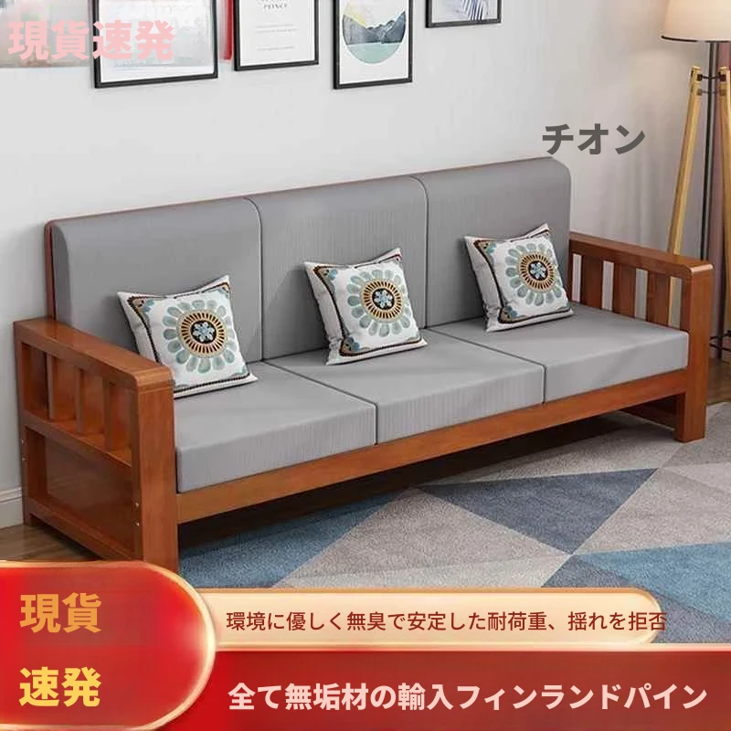 モダンミニマリスト全無垢材ソファセット 小型リビング向け コーナー付きデザイン フェイフィソファ 松の木製 三人用 中華風スタイルでおしゃれな空間を演出!